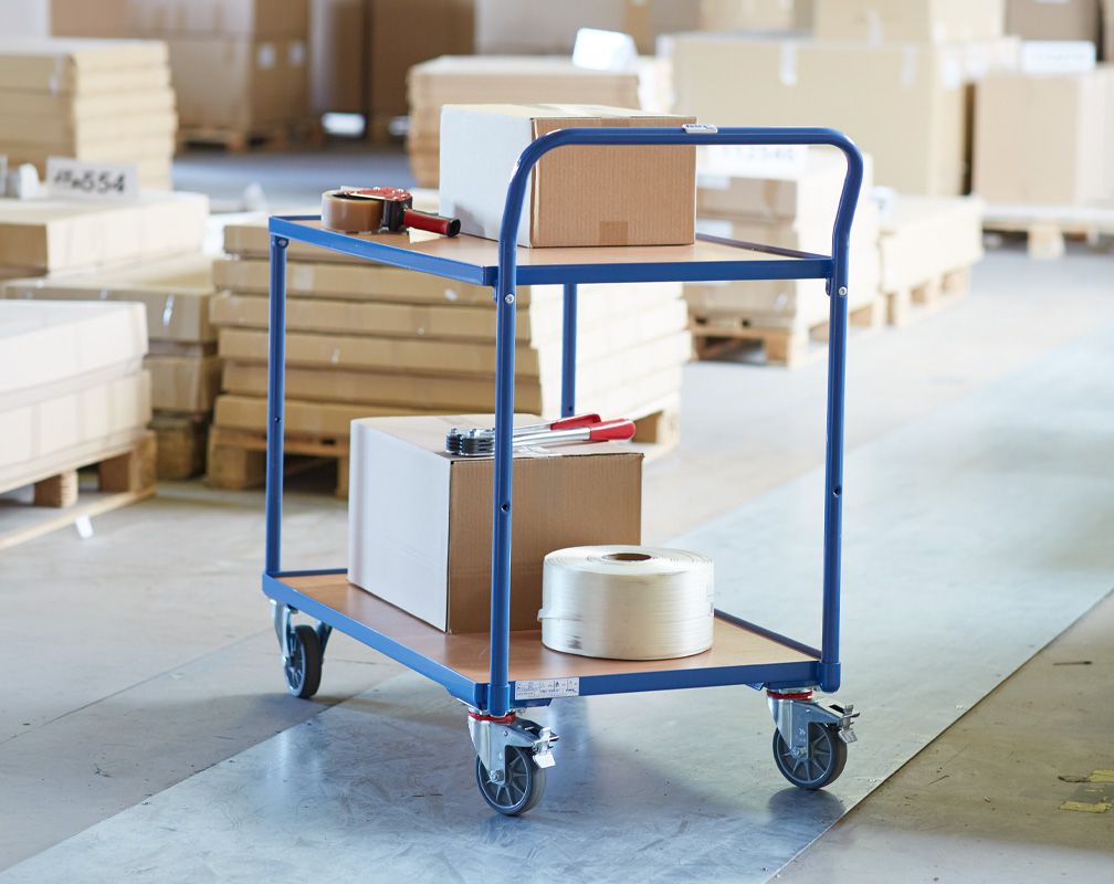 Die 500 mm breite Ladefläche des Tischwagens lässt Sie kleinere Gegenstände problemlos und sicher transportieren